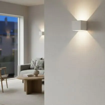 La pièce dans laquelle l'applique LED doit être installée et la température de couleur sont une dimension importante à prendre en compte. En effet, certaines températures de couleur ne sont pas adaptées à toutes les situations. La lumière à tonalité chaude, telle que 2700K et 3000K, a un caractère chaleureux et s'adapte donc bien, par exemple, à une terrasse extérieure ou à des zones générales telles que les couloirs, les galeries et un hall d'entrée. La lumière blanche froide (4000K) a un caractère un peu plus frais/ naturel et sert donc mieux d'éclairage fonctionnel.