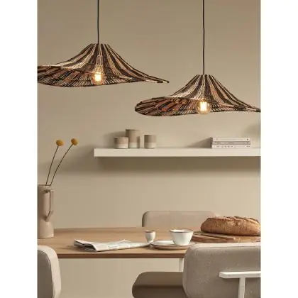 Description Good&Mojo Suspension Luminaire Cuzco Jute Noir/Natural | Convient pour 1x E27
