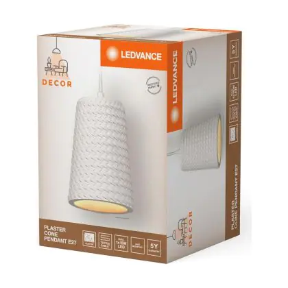Investissez dans une solution à long terme, de heures en choisissant le Ledvance Decor Plâtre/Acier Cone Suspension Luminaire Blanc | Convient pour E27.