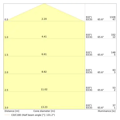 La valeur IP détermine la protection contre la poussière et les projections d'eau. Le premier chiffre indique le degré de protection contre le risque d’entrée de corps solides, compris entre 0 et 6. Le second chiffre concerne toutefois la protection contre l'entrée de substances liquides, qui peut varier de 0 à 8. Ce luminaire a un IP44 – Résistant aux éclaboussures