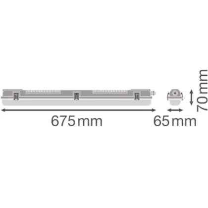 Cette réglette LED d'une longueur de 675 mm est l'alternative durable et économe en énergie à un luminaire fluorescent de même format et avec deux tubes fluorescents de Watt.
