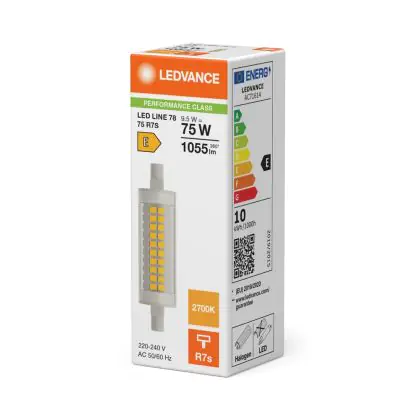 Ledvance LED Slim Line R7s 78mm 9.5W 1055lm - 827 Blanc Très Chaud | Équivalent 75W est le remplacement parfait pour vos lampes halogènes traditionnelles R7s de 75W avec un code couleur . Les ampoules LED ne produisent pas de chaleur et n’émettent pas de radiation UV. Passez à la LED vous offrira de nombreux avantages !