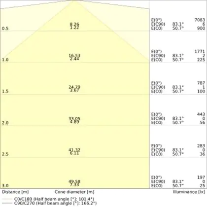 Le rapport lumen/watt (lm/W) indique l'efficacité avec laquelle une source lumineuse convertit l'énergie en lumière. Pour cela, on divise le nombre de lumens par le wattage. Plus le chiffre est élevé, plus le produit est efficace en termes de consommation d'énergie. L'éclairage LED présente un rapport lumen/watt nettement supérieur à celui de l'éclairage classique.