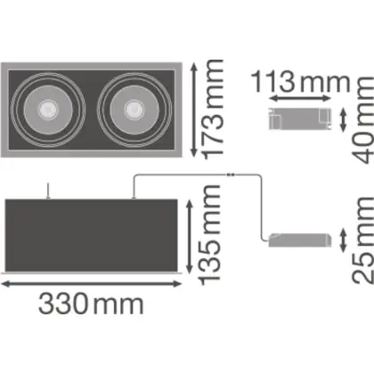 Caractéristiques du Ledvance Spot LED Carré Multi inclinable Noir-Blanc 2x30W 5400lm 38D - 830 Blanc Chaud | Diamètre 320x160mm