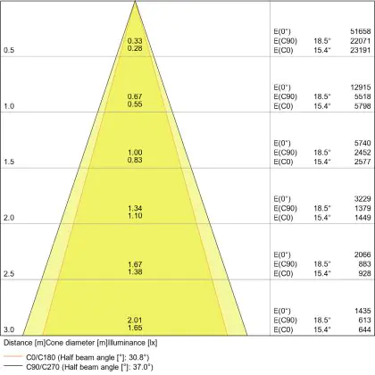 • Angle de diffusion de la lumière (degrees): 38