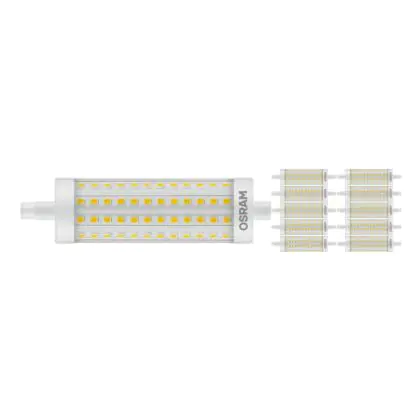 Lot 10x Ledvance LED Line R7s double Ended 118mm 15W 2000lm - 827 Blanc Très Chaud | Dimmable - Équivalent 125W est le remplacement parfait pour vos lampes halogènes traditionnelles R7s de 125W avec un code couleur 827 Blanc Très Chaud. Les ampoules LED ne produisent pas de chaleur et n’émettent pas de radiation UV. Passez à la LED vous offrira de nombreux avantages !