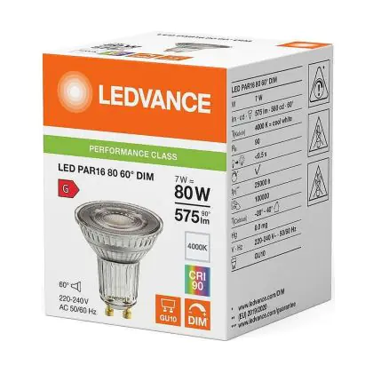 Description Lot 10x Ledvance LED PAR16 GU10 Réflecteur 7W 575lm 60D - 940 Blanc Froid | Meilleur Rendu Des Couleurs - Dimmable - Équivalent 80W