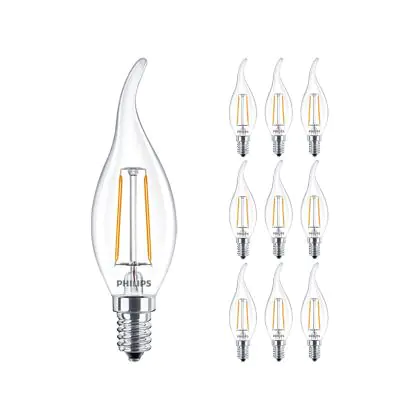 Lot 10x Philips Corepro LED Bougie E14 Bent-tip Filament Claire 2W 250lm - 827 Blanc Très Chaud | Équivalent 25W