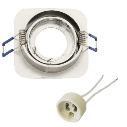 Ce produit est utilisé en combinaison avec les lampes MR16 et GU10. Le luminaire NOXION est livré avec un câble de 18 cm pour une connexion sur 220-240v, généralement désigné : 230v 50Hz qui sont approprié pour des lampes allant jusqu’à 50W. Par ailleurs, un ressort de serrage est prévu dans lequel la lampe est simplement serrée sur l’arrière de l’appareil. Le ressort de serrage, grâce à sa flexibilité, n’est pas visible une fois l’installation terminée. Lorsque la lampe ne fonctionne plus, celle-ci peut être facilement remplacée par une autre source lumineuse. Les ampoules halogènes peuvent être directement remplacées par des modèles équivalents en technologie LED sans avoir à changer quoi que ce soit dans votre installation!