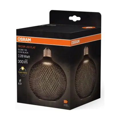 Description Osram Decor Plat Lamp In Métal Boîtier Vide LED E27 Globe Dépolie Noir 3.5W 300lm - 827 Blanc Très Chaud | Équivalent 25W