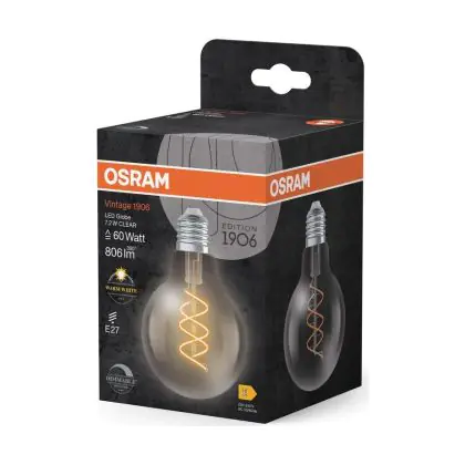 Description Osram Vintage 1906 LED E27 Globe Filament Twist Claire 7.2W 806lm - 927 Blanc Très Chaud | Meilleur Rendu Des Couleurs - Dimmable - Équivalent 60W