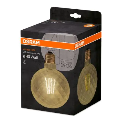 Description Osram Vintage 1906 LED E27 Pine Filament Dorée 4.5W 470lm - 825 Blanc Très Chaud | Équivalent 40W
