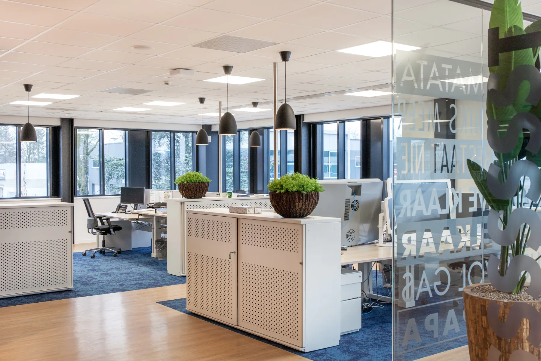 Au cours de ce projet, nous avons installé différents types de luminaires LED. Les panneaux LED fournissent un éclairage général, tandis que les rails LED, les lampes suspendues et les spots encastrés fournissent l'éclairage d'accentuation souhaité. L'éclairage est également équipé de gradateurs et de capteurs.