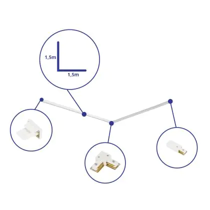 Beschrijving Bright Choice Rail Set 1-Fase L 1,5 x 1,5 Meter Wit | incl.Eindkap, Voedingsconnector en L -Verbindingsstuk