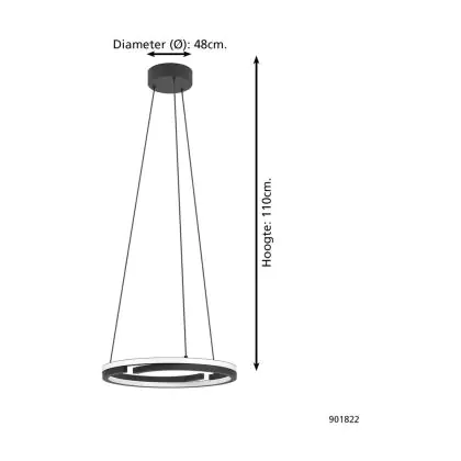 Beschrijving Eglo Hanglamp Mezzomonte Aluminium Staal Zwart 20W 1600lm - 827-865 Afstembaar Wit | IP20 - Dimbaar