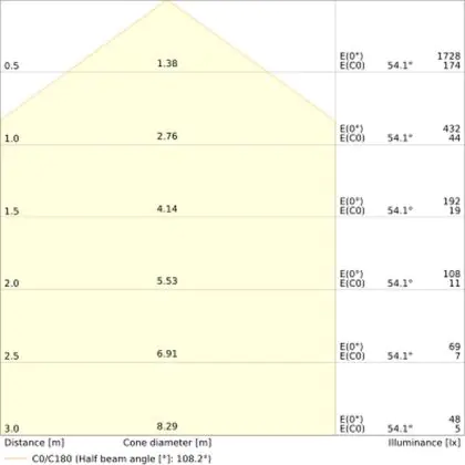 ![]() De kleurcode is een combinatie van de kleurweergave (CRI) en lichtkleur (Kelvin). Het eerste getal is de kleurweergave (1 = zeer slechte kleurweergave, 9 = maximale kleurechtheid). Het tweede en derde cijfer betreft de lichtkleur. Een lamp met kleurcode 830 heeft bijvoorbeeld een goede kleurweergave en straalt een warm wit licht uit (3000K), waar een lamp met de kleurcode 940 een uitstekende CRI heeft en een koel wit licht (4000K) uitstraalt. |