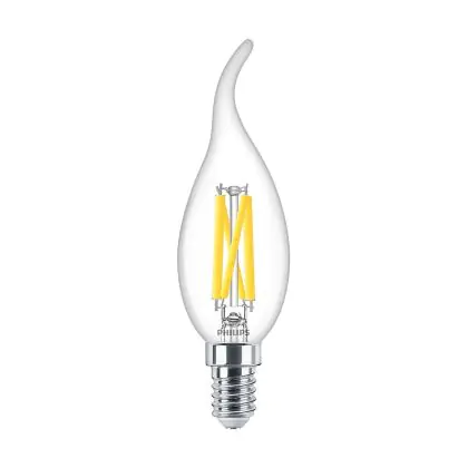 Beschrijving Voordeelpak 10x Philips MASTER LED E14 Gebogen-tip Kaars Filament Helder 3.4W 470lm - 922-927 Dim To Warm | Beste Kleurweergave - Dimbaar - Vervangt 40W